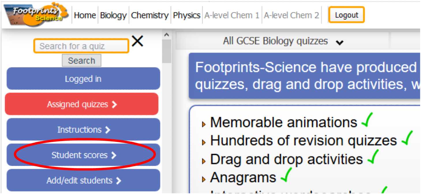 Select 'Student scores' from the menu